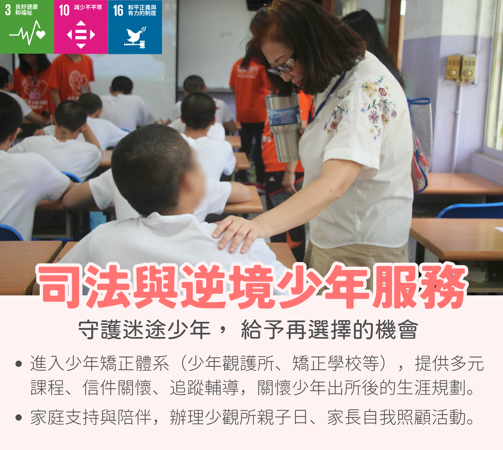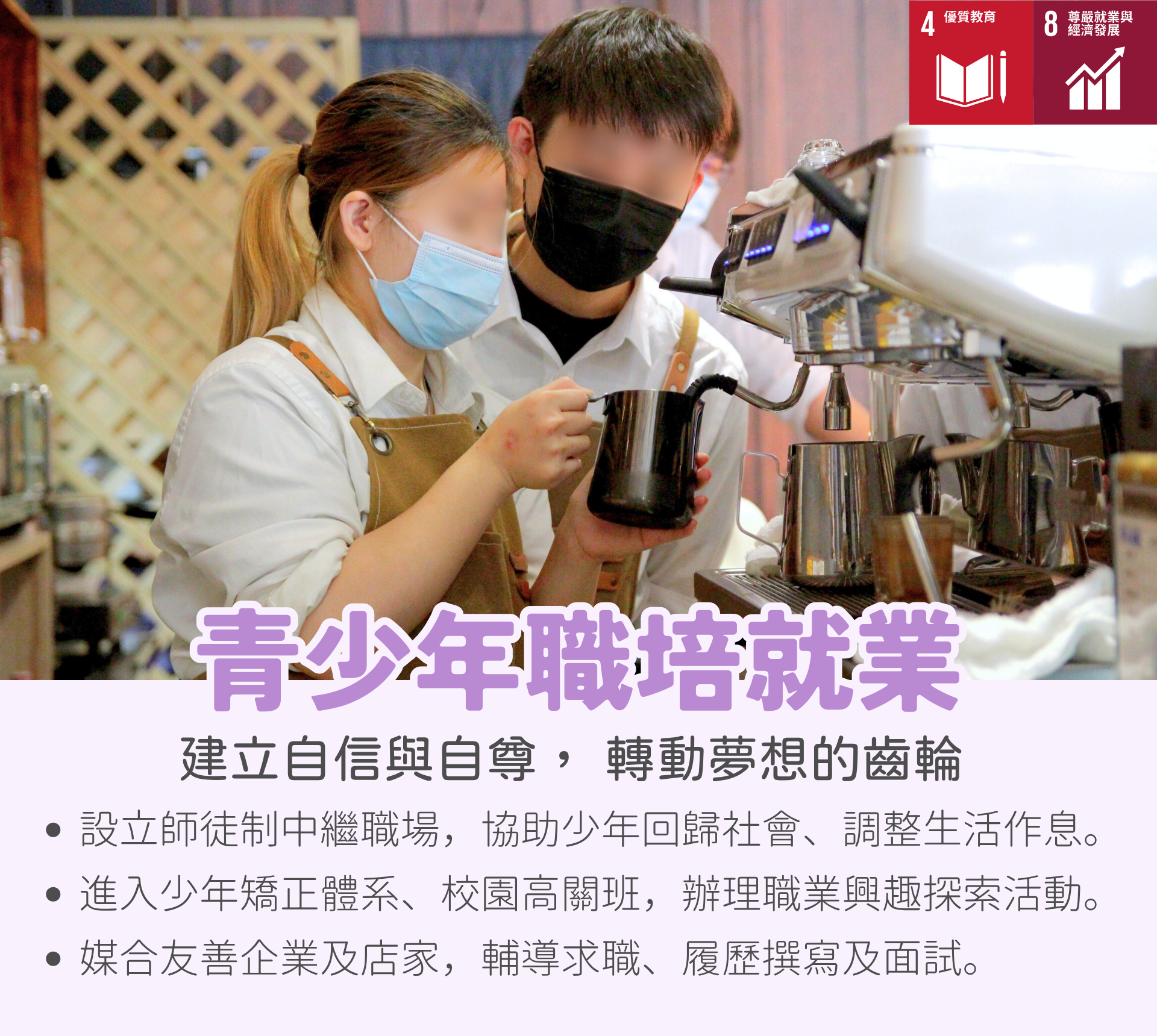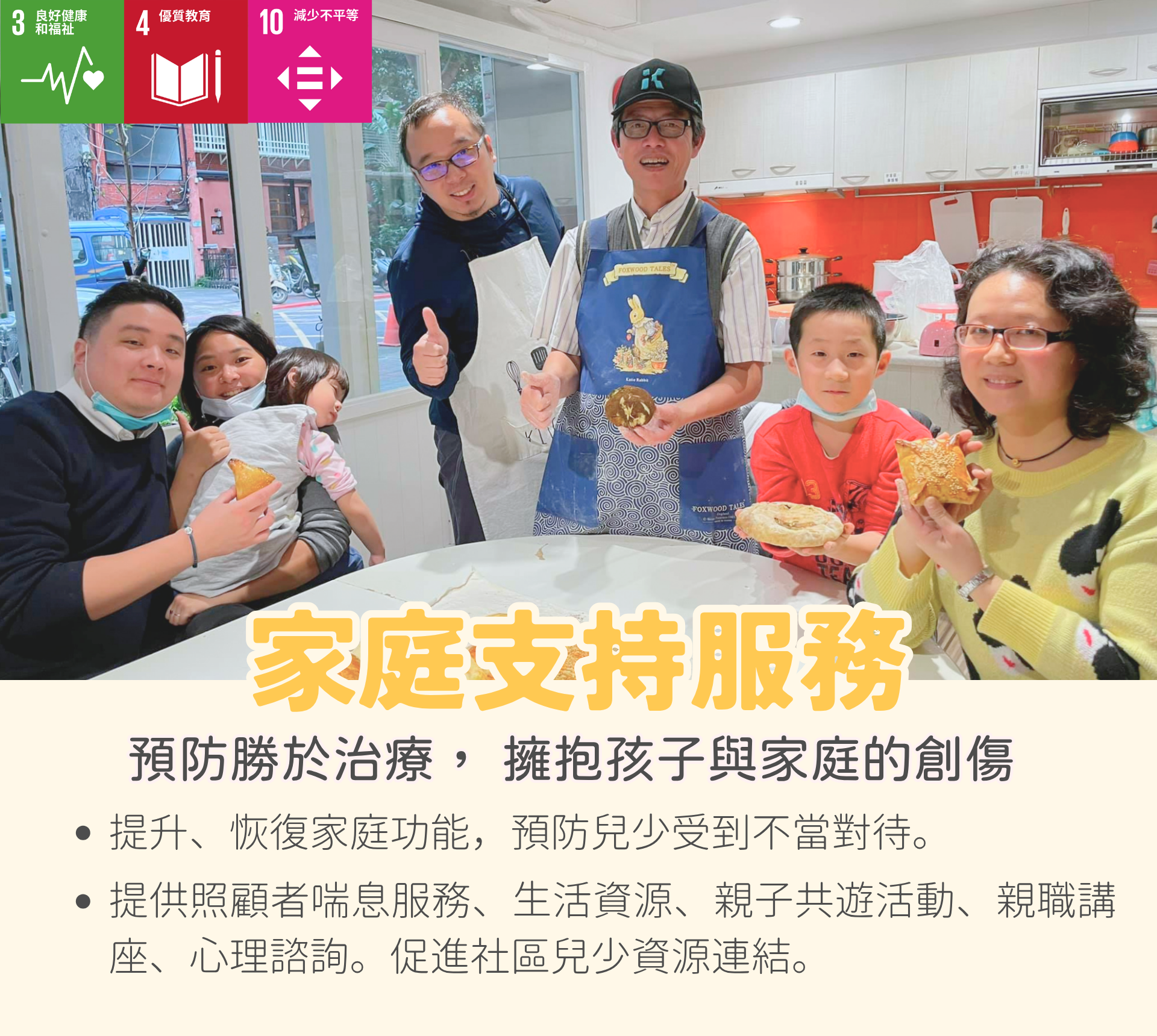 ★ 我們的使命:透過六大服務,創造一個完善的青少年保護系統,幫助兒少與其家庭修復創傷,預防落入逆境,並維持良好狀態。我們希望,每個兒少與家庭都能找到自信與尊嚴、發揮優勢,選擇自己的人生。